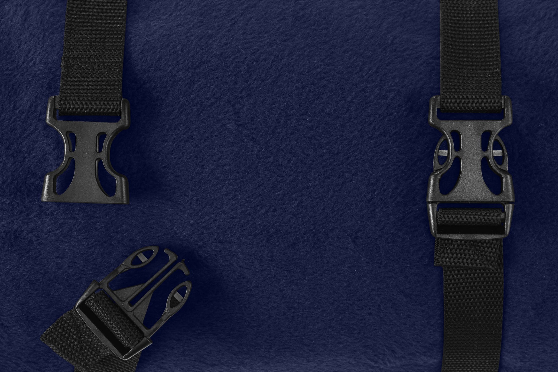 This soft fleece blanket--perfect for taking the chill off--comes with a strap with ample room for a logo.
